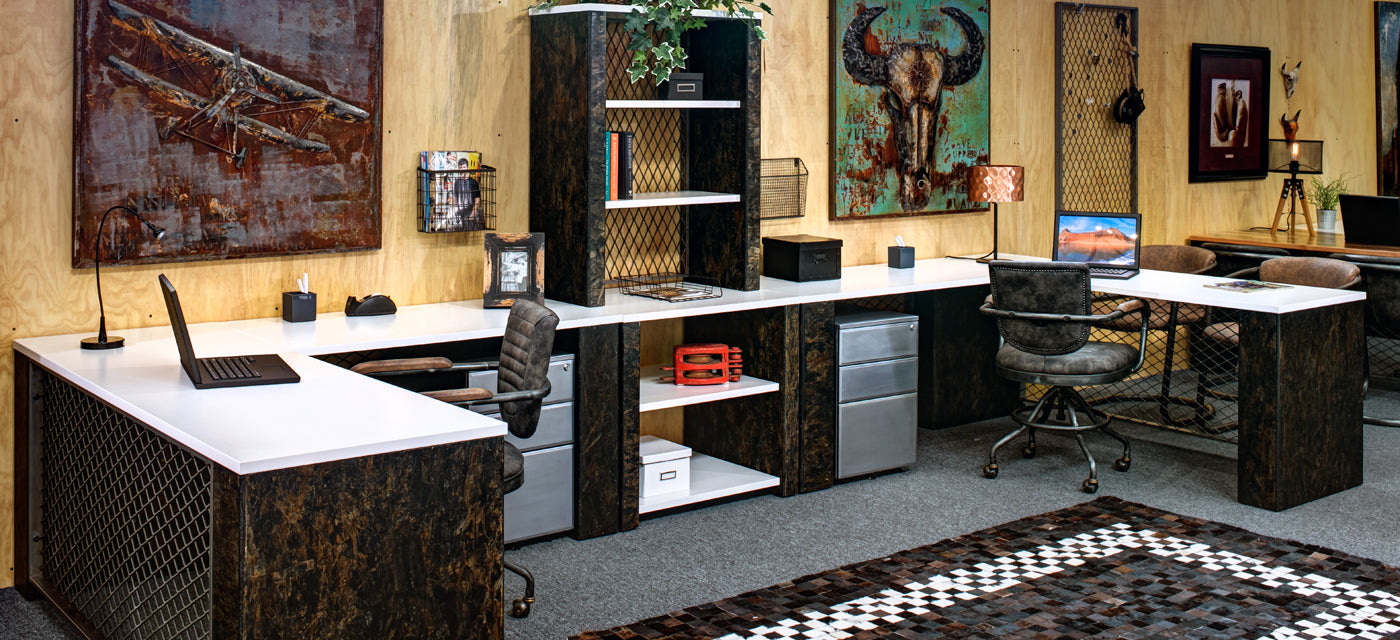 While there are many ways to attain an industrial vibe in your workspace, our collection of upscale, functional and unique designs pull together your workspace. The industrial design philosophy is all about simplicity, and proudly displaying what others try and conceal. Our Industrial desks quickly become a focal point in any room. Our office seating and storage options are a perfect pairing to complete the look.